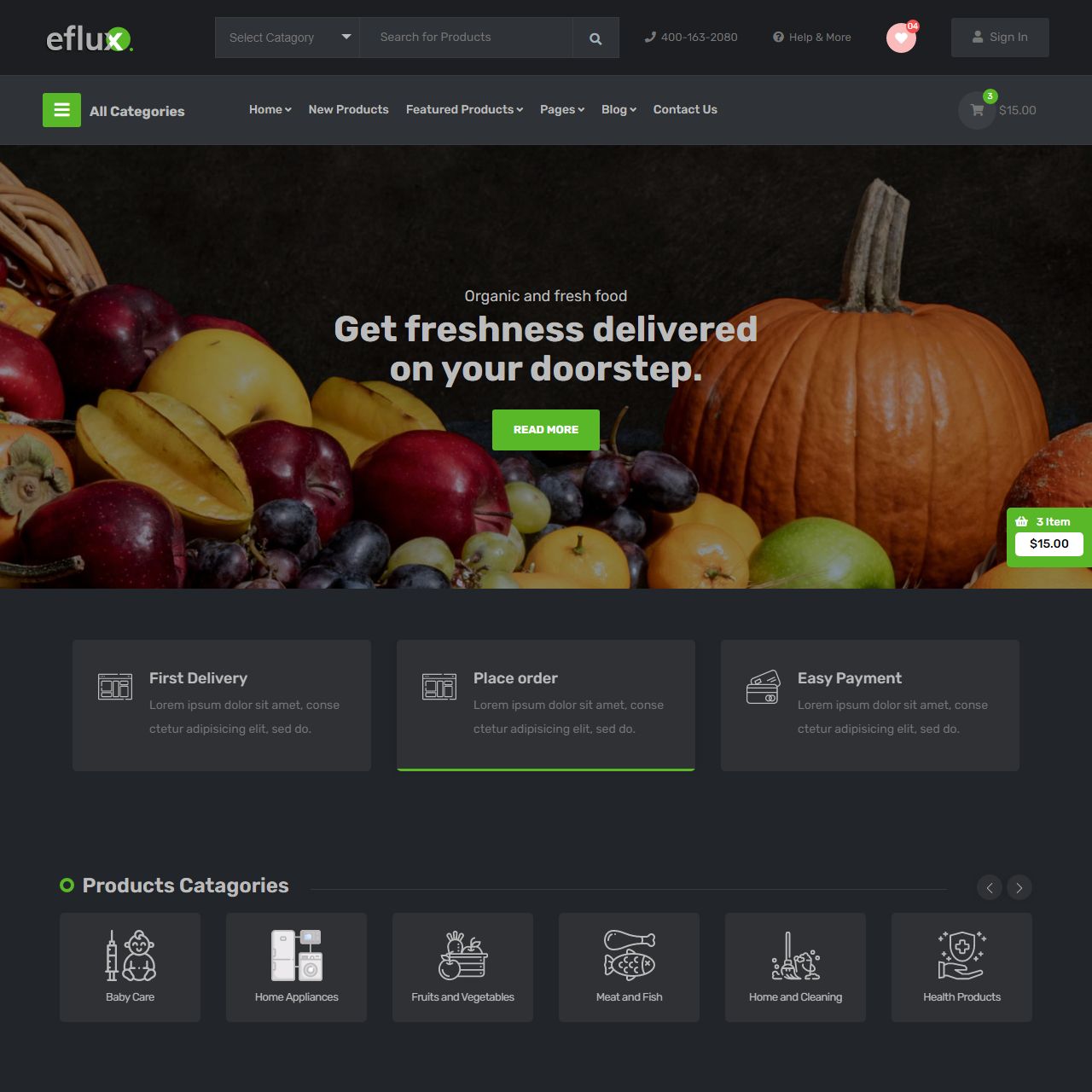 一个干净且响应迅速的多用途电子商务 HTML 模板,适用于有机食品店、水果店、在线商店、杂货店、电子产品、电子产品商店、时装店、美容、电子书、电子产品、手表、智能手表、香水、太阳镜、耳机和任何超市商店。
