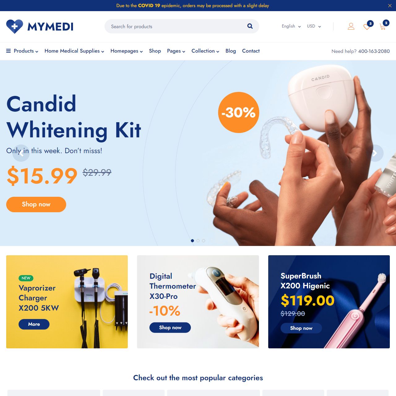 专为在线商店购物而设计。 适用于医疗网站。也适用于其他电子商务网站,如时尚、电子、有机、运动鞋、鞋子、眼镜、配饰、超市……
